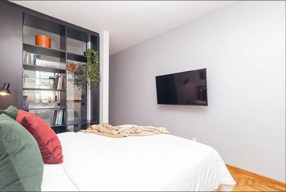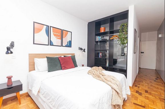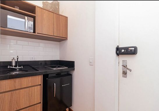 Apartamento tipo Kitnet totalmente mobiliado e equipado com Banheiro revitalizado e Cozinha equipada . Não tem vaga